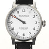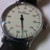 A single handed mechanical watch. Each line on the dial is representative of a 5 minute interval. Every 15 minutes is marked by a more prominent line.